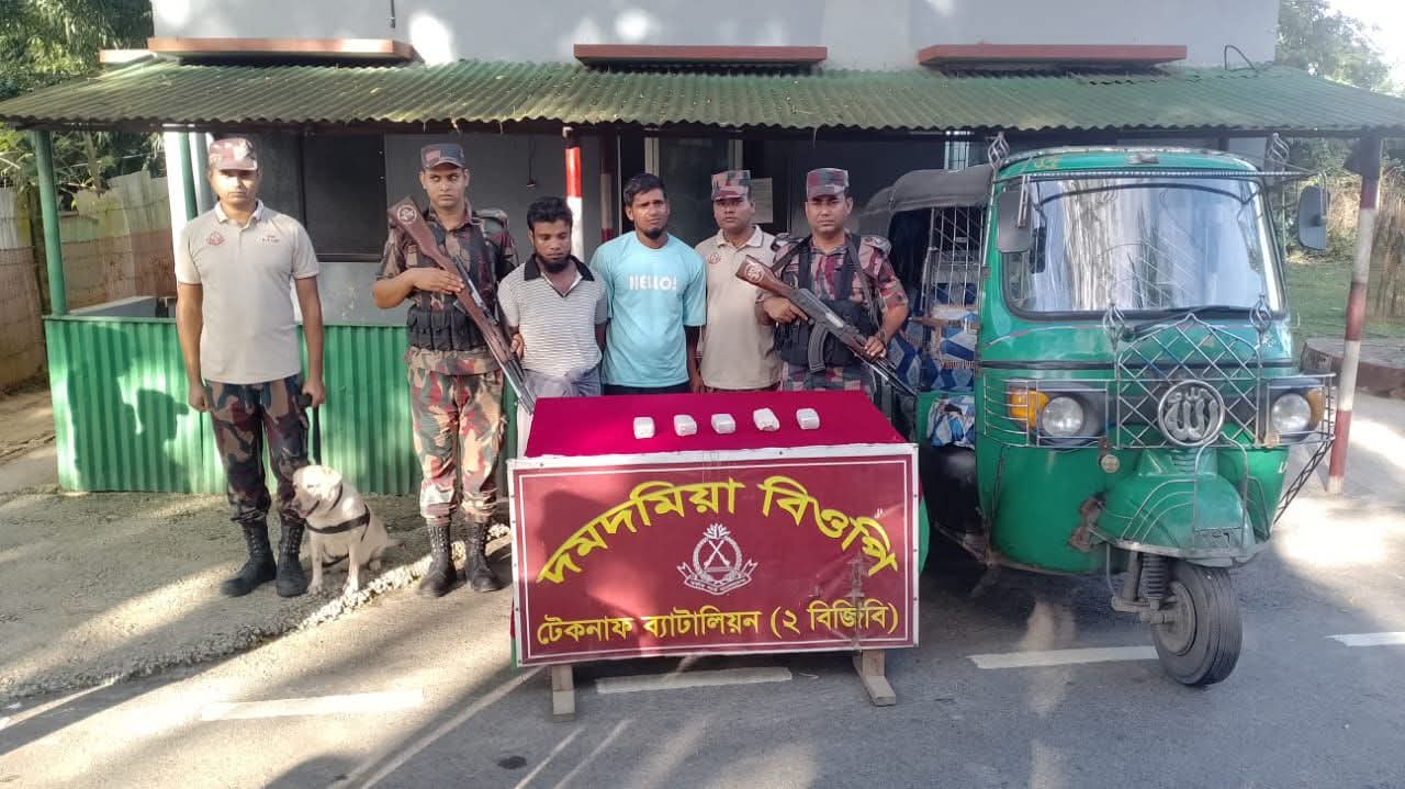আজ, ৩০ আগস্ট ২০২৫ তারিখ আনুমানিক ১৪৩০ ঘটিকায় টেকনাফ ব্যাটালিয়ন (২ বিজিবি) এর দমদমিয়া চেকপোস্টে কর্তব্যরত বিজিবি সদস্যরা কুতুপালং হতে টেকনাফগামী একটি রেজিঃ বিহীন ‘সিএনজি’ (চেসিজ নং MBX0004CFMF116855 এবং ইঞ্জিন নং অস্পষ্ট) তল্লাশীর জন্য থামায়। সিএনসিজি’টি থামানোর পর, বিজিবি K-9 ইউনিটের দক্ষ সদস্য ডগ ‘মেঘলা’ (বিজিডি-১০৮৯, নারকোটিক্স, মহিলা) তল্লাশি শুরু করলে তাৎক্ষণিকভাবে সিএনজি’র পিছনের সিটের বাম পাশে বসা বস্তাসহ একজন আসনধারীর বস্তায় ক্রমাগত সংকেত দিতে থাকে। একই মুহূর্তে ঐ আসনের আরোহীর সন্দেহজনক আচরণ কর্তব্যরত বিজিবি সৈনিকদের নজরে আসে। পরবর্তীতে সৈনিকরা তাকে এবং বস্তাটি তল্লাশি করে বস্তার ভিতরে রাজমিস্ত্রীর কাজে ব্যবহৃত সরঞ্জামাদির নিচে লুকানো বিশেষভাবে মোড়কজাতকৃত অবস্থায় ১০,০০০ পিস ইয়াবা ট্যাবলেটসহ আটক করে। উক্ত সময়ে অবৈধভাবে মাদকদ্রব্য পরিবহনে ব্যবহৃত সিএনজি’র চালক দৌড়ে পালানোর চেষ্টা করলে বিজিবি টহল দল কর্তৃক তাকে আটক করে। বর্তমানে, আটককৃত আসামীদের বিরুদ্ধে মাদকদ্রব্য নিয়ন্ত্রণ আইনে মামলা দায়েরপূর্বক জব্দকৃত আলামতসহ টেকনাফ মডেল থানায় হস্তান্তরের কার্যক্রম প্রক্রিয়াধীন। ধৃত আসামীদের বিস্তারিত পরিচয় নিম্নরূপ: