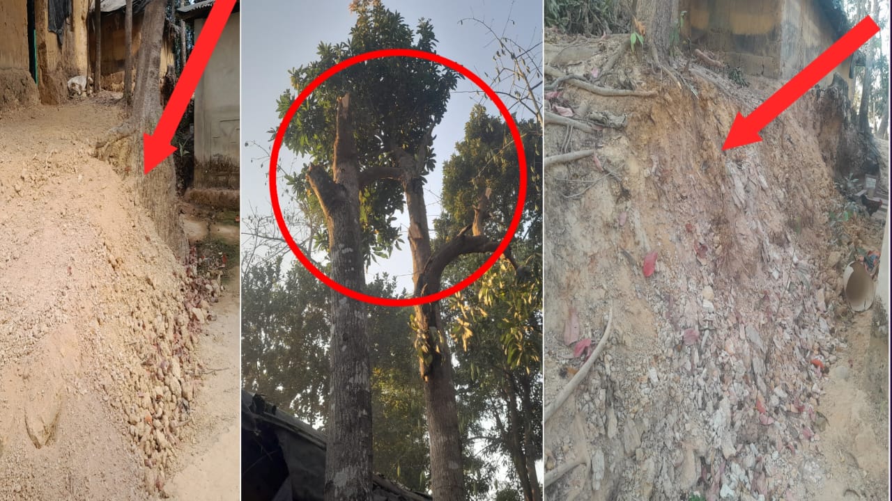 সবচেয়ে উদ্বেগজনক অভিযোগটি হলো—নুরুল হকের স্ত্রী জাহানারা বেগম, যিনি একজন রোহিঙ্গা নারী, তিনি ক্যাম্প এলাকার কিছু উগ্র রোহিঙ্গাকে ব্যবহার করে নুর হোসেনের বাড়িতে হামলা চালিয়েছেন। ধারালো অস্ত্র, দা ও রড নিয়ে হামলাকারীরা ঘরের আসবাবপত্র ভাঙচুর করে এবং বাড়ির সামনে থাকা দুটি আমগাছ কেটে ফেলে দেয়। এমনকি মাটি কেটে এনে বসতভিটার উঠানে ফেলে রেখে পরিবেশ নষ্ট করা হয়।(ছবি সংগৃহীত রয়েছে)