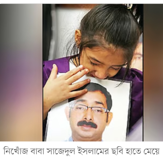 নিখোঁজ বাবা সাজেদুল ইসলামের ছবি হাতে মেয়ে আরওয়া ইসলাম
